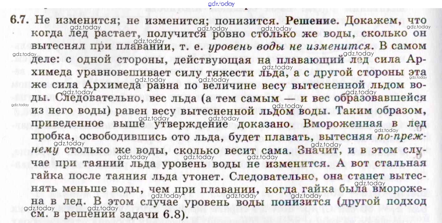 На страницах сайта gdz.today вы найдете учебный и вспомогательный материал, направленный на улучшения знаний школьной программы. ГДЗ - онлайн мир знаний Решение к теме 6. Гидростатика и аэростатика 6.7 Задачнику по Физике для 8-11 класса Гельфгат, Генденштейн Илекса 2021