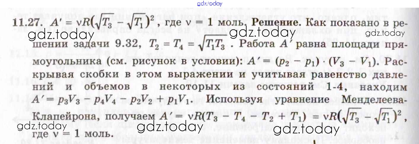 На страницах сайта gdz.today вы найдете учебный и вспомогательный материал, направленный на улучшения знаний школьной программы. ГДЗ - онлайн мир знаний Решение к теме 11. Законы термодинамики 11.27 Задачнику по Физике для 8-11 класса Гельфгат, Генденштейн Илекса 2021