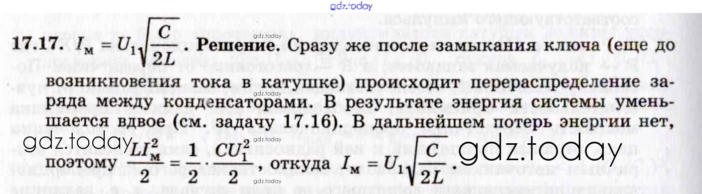 Ответы к Решение к теме 17. Электромагнитные колебания и волны. Переменный ток 17.17 Задачнику по Физике для 8-11 класса Гельфгат, Генденштейн Илекса 2021
