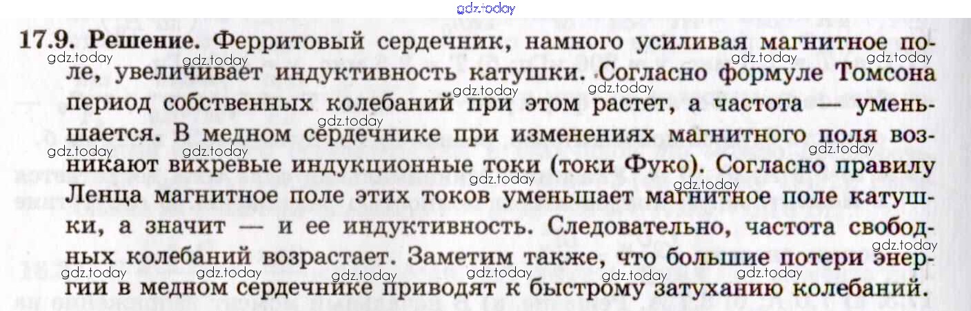 На страницах сайта gdz.today вы найдете учебный и вспомогательный материал, направленный на улучшения знаний школьной программы. ГДЗ - онлайн мир знаний Решение к теме 17. Электромагнитные колебания и волны. Переменный ток 17.9 Задачнику по Физике для 8-11 класса Гельфгат, Генденштейн Илекса 2021