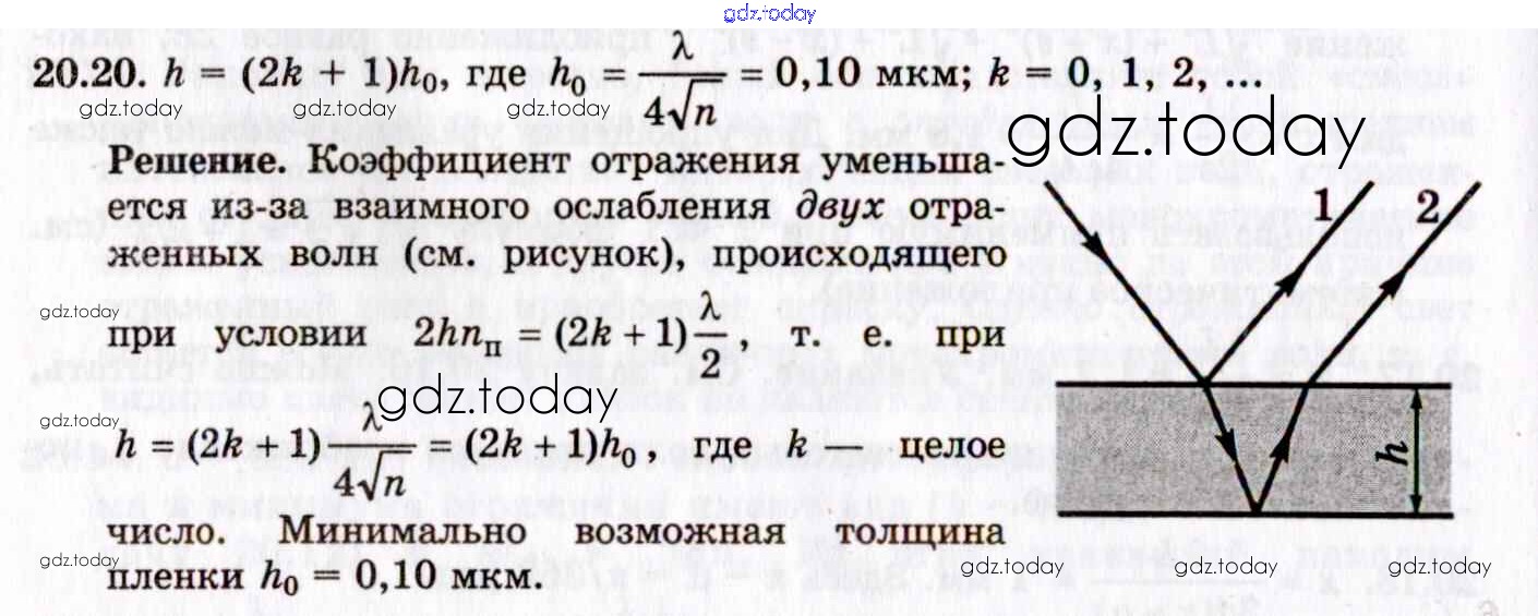 Ответы к Решение к теме 20. Волновая оптика 20.20 Задачнику по Физике для 8-11 класса Гельфгат, Генденштейн Илекса 2021