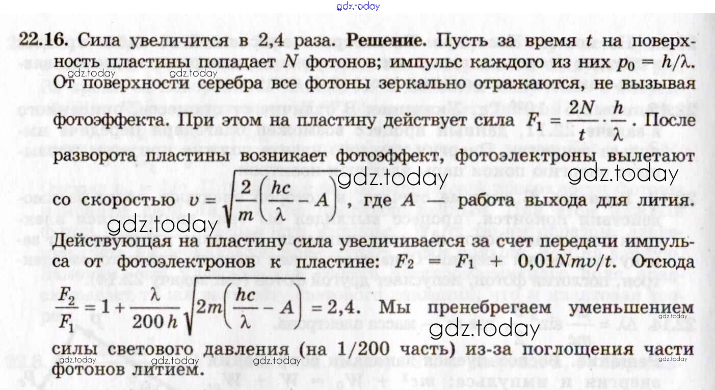 Ответы к Решение к теме 22. Кванты, атомы, ядра, частицы 22.16 Задачнику по Физике для 8-11 класса Гельфгат, Генденштейн Илекса 2021