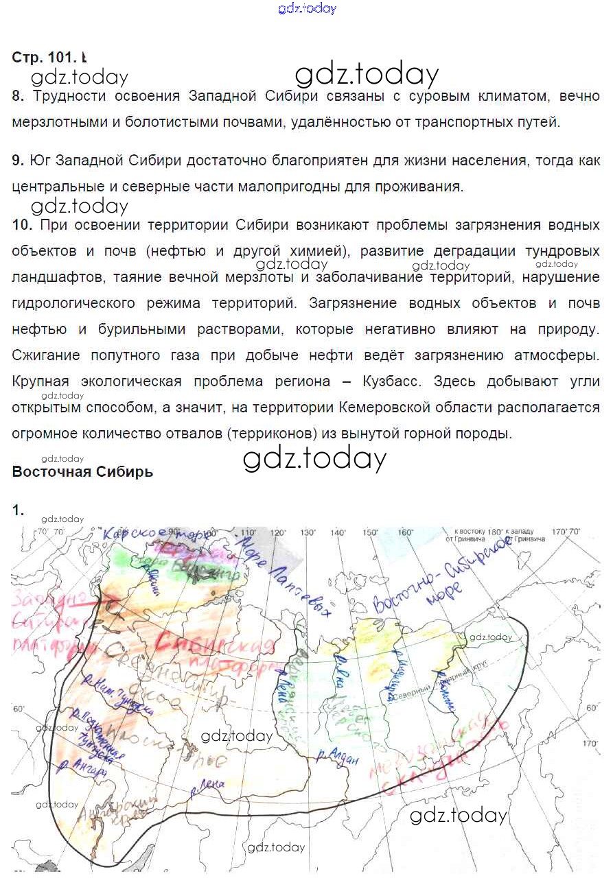 Ответы к Страницы (решение) 101 Рабочей тетради по Географии для 8 класса Баринова Дрофа УМК 2018