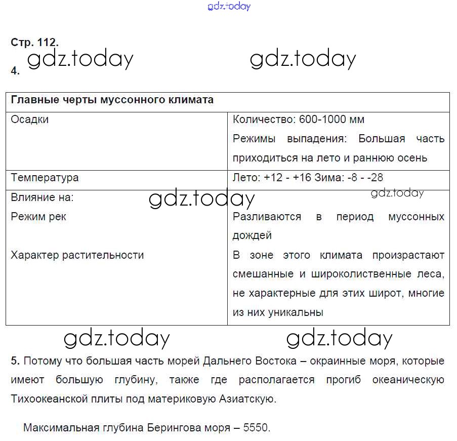 На страницах сайта gdz.today вы найдете учебный и вспомогательный материал, направленный на улучшения знаний школьной программы. ГДЗ - онлайн мир знаний Страницы (решение) 112 Рабочей тетради по Географии для 8 класса Баринова Дрофа УМК 2018