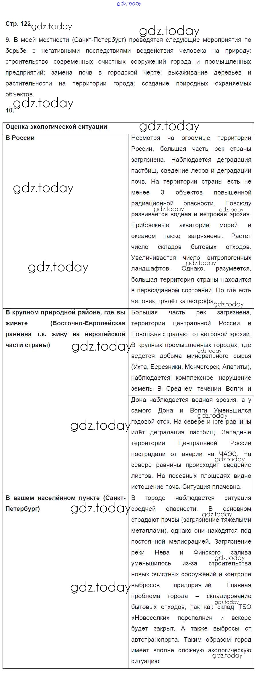 На страницах сайта gdz.today вы найдете учебный и вспомогательный материал, направленный на улучшения знаний школьной программы. ГДЗ - онлайн мир знаний Страницы (решение) 122 Рабочей тетради по Географии для 8 класса Баринова Дрофа УМК 2018