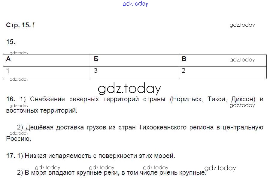 Ответы к Страницы (решение) 15 Рабочей тетради по Географии для 8 класса Баринова Дрофа УМК 2018