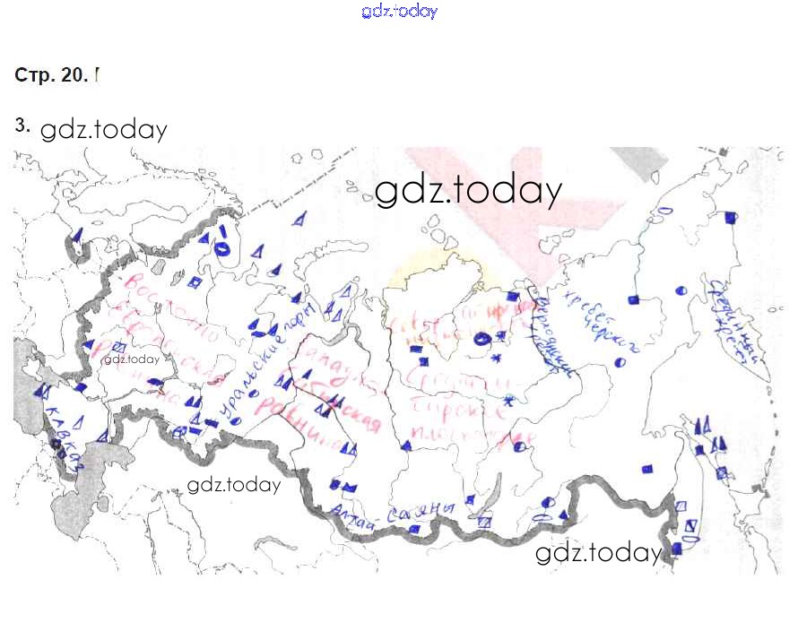 На страницах сайта gdz.today вы найдете учебный и вспомогательный материал, направленный на улучшения знаний школьной программы. ГДЗ - онлайн мир знаний Страницы (решение) 20 Рабочей тетради по Географии для 8 класса Баринова Дрофа УМК 2018