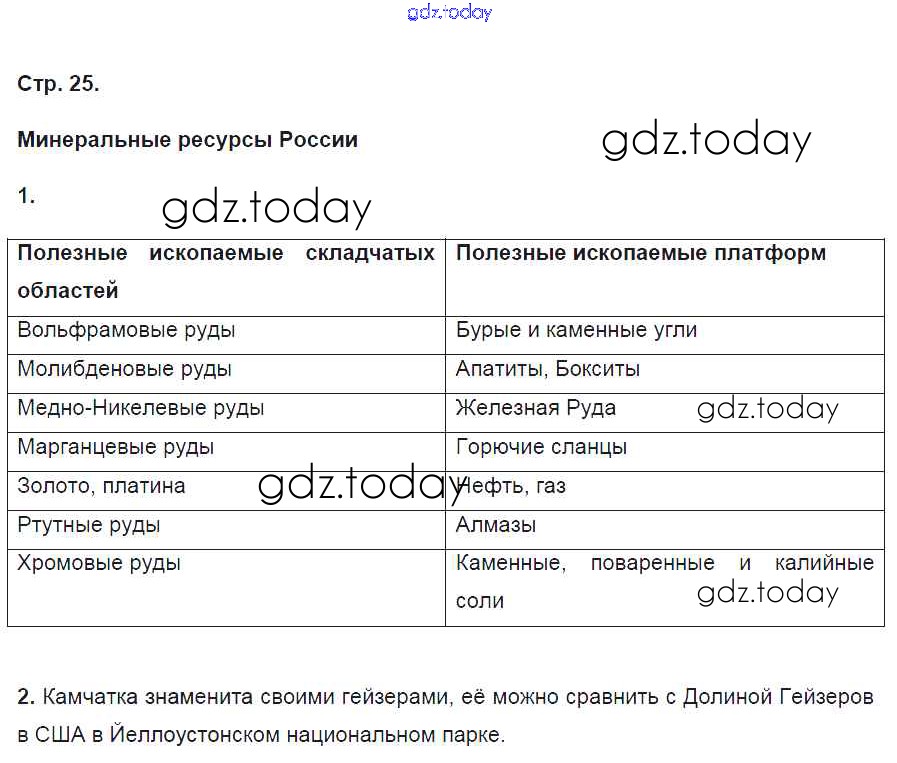 На страницах сайта gdz.today вы найдете учебный и вспомогательный материал, направленный на улучшения знаний школьной программы. ГДЗ - онлайн мир знаний Страницы (решение) 25 Рабочей тетради по Географии для 8 класса Баринова Дрофа УМК 2018