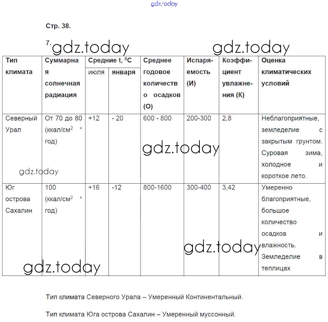 Ответы к Страницы (решение) 38 Рабочей тетради по Географии для 8 класса Баринова Дрофа УМК 2018