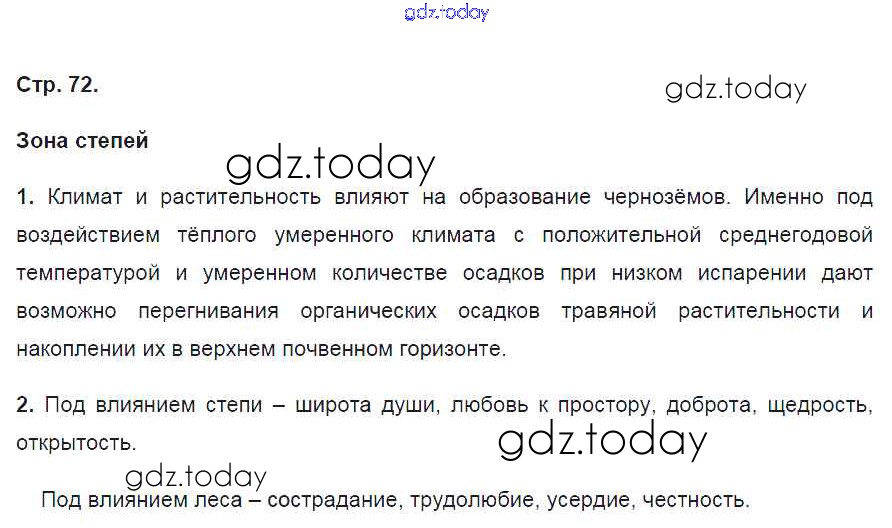 На страницах сайта gdz.today вы найдете учебный и вспомогательный материал, направленный на улучшения знаний школьной программы. ГДЗ - онлайн мир знаний Страницы (решение) 72 Рабочей тетради по Географии для 8 класса Баринова Дрофа УМК 2018