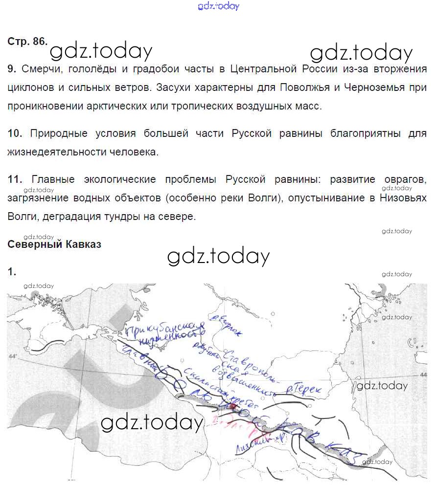 На страницах сайта gdz.today вы найдете учебный и вспомогательный материал, направленный на улучшения знаний школьной программы. ГДЗ - онлайн мир знаний Страницы (решение) 86 Рабочей тетради по Географии для 8 класса Баринова Дрофа УМК 2018
