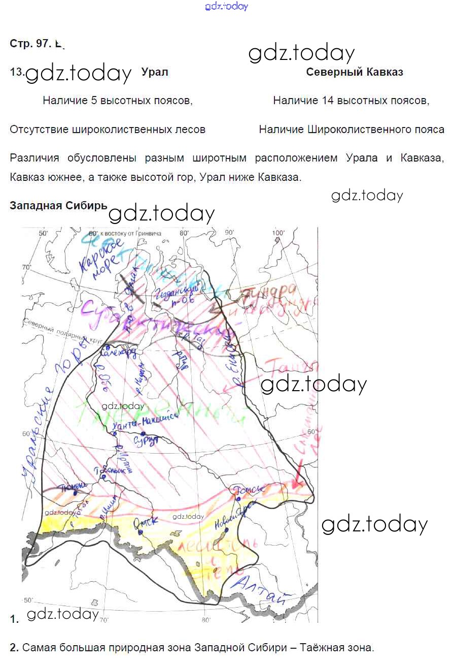 Ответы к Страницы (решение) 97 Рабочей тетради по Географии для 8 класса Баринова Дрофа УМК 2018