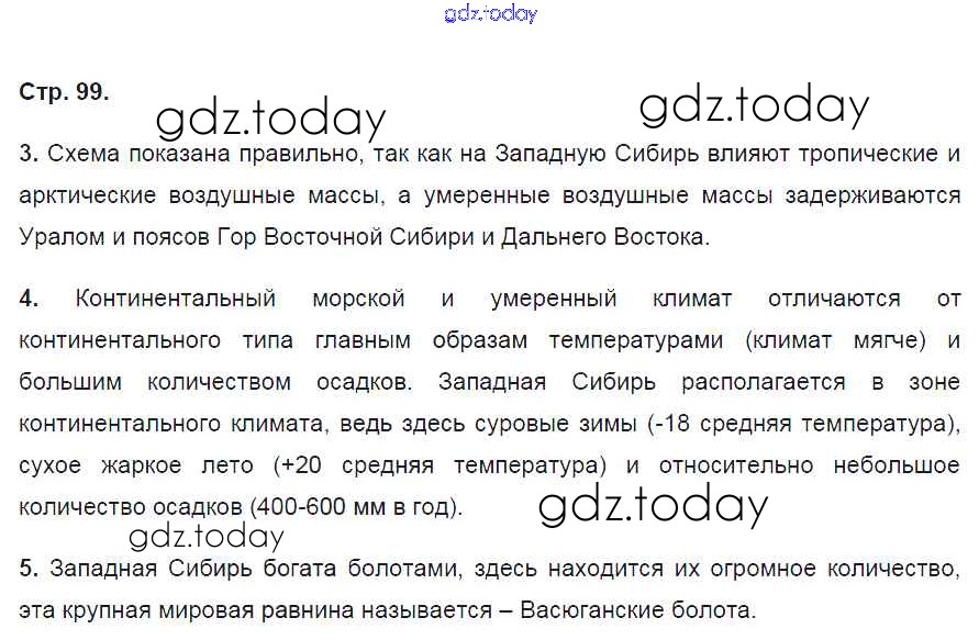 На страницах сайта gdz.today вы найдете учебный и вспомогательный материал, направленный на улучшения знаний школьной программы. ГДЗ - онлайн мир знаний Страницы (решение) 99 Рабочей тетради по Географии для 8 класса Баринова Дрофа УМК 2018