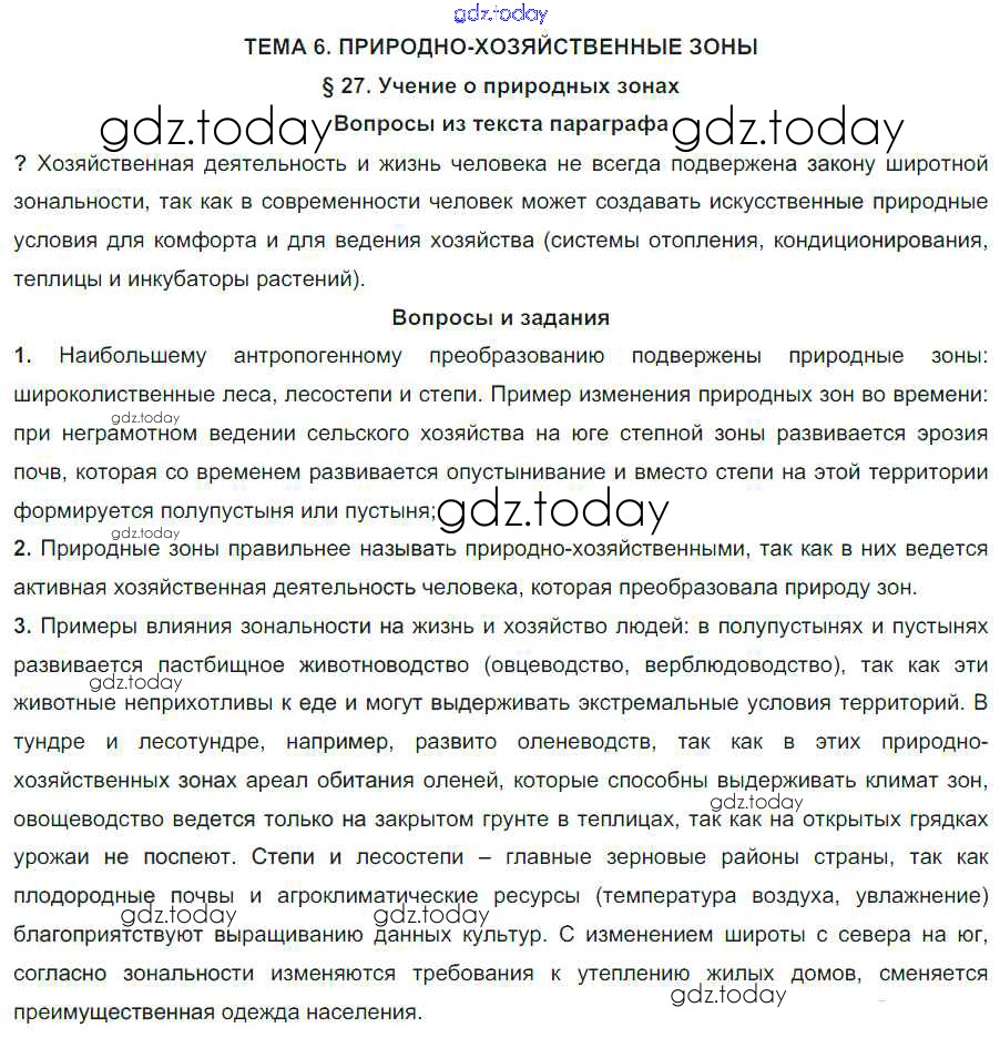 На страницах сайта gdz.today вы найдете учебный и вспомогательный материал, направленный на улучшения знаний школьной программы. ГДЗ - онлайн мир знаний Решение к параграфам 27 Учебнику по Географии для 8 класса Алексеев Дрофа УМК 2018