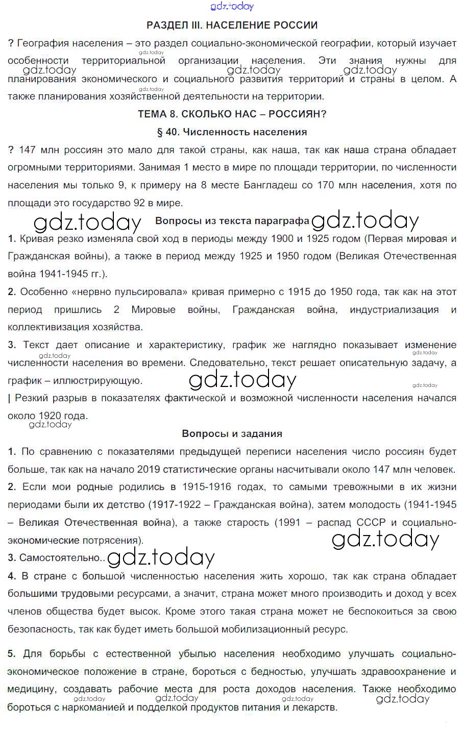 На страницах сайта gdz.today вы найдете учебный и вспомогательный материал, направленный на улучшения знаний школьной программы. ГДЗ - онлайн мир знаний Решение к параграфам 40 Учебнику по Географии для 8 класса Алексеев Дрофа УМК 2018