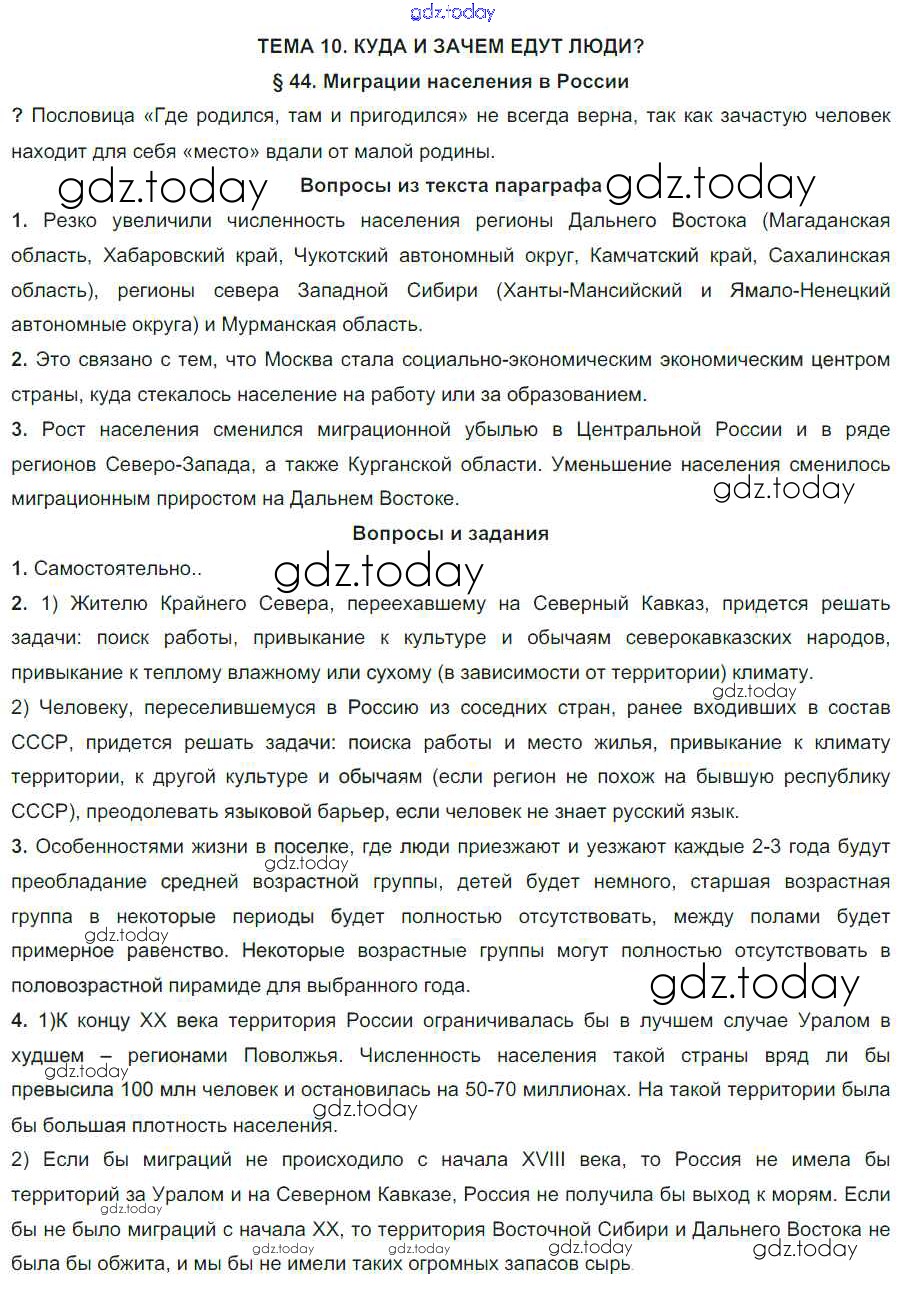На страницах сайта gdz.today вы найдете учебный и вспомогательный материал, направленный на улучшения знаний школьной программы. ГДЗ - онлайн мир знаний Решение к параграфам 44 Учебнику по Географии для 8 класса Алексеев Дрофа УМК 2018