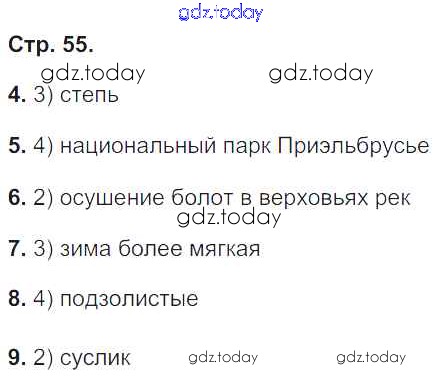 На страницах сайта gdz.today вы найдете учебный и вспомогательный материал, направленный на улучшения знаний школьной программы. ГДЗ - онлайн мир знаний Страницы (решение) 55 Тетради-экзаменатору по Географии для 8 класса Барабанов Просвещение Сферы 2016