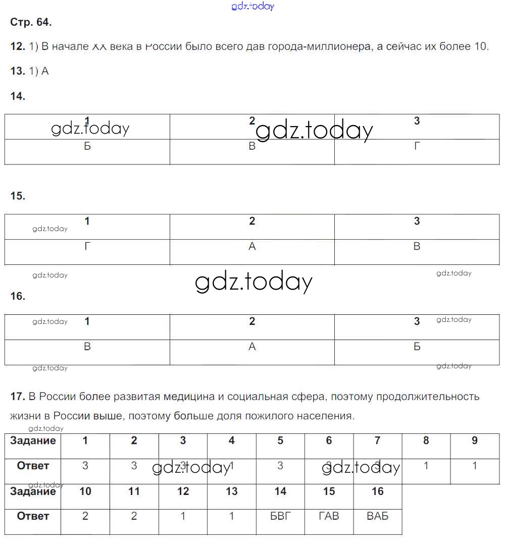 На страницах сайта gdz.today вы найдете учебный и вспомогательный материал, направленный на улучшения знаний школьной программы. ГДЗ - онлайн мир знаний Страницы (решение) 64 Тетради-экзаменатору по Географии для 8 класса Барабанов Просвещение Сферы 2016
