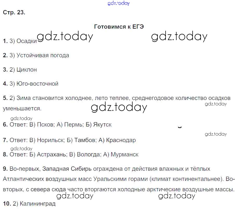 На страницах сайта gdz.today вы найдете учебный и вспомогательный материал, направленный на улучшения знаний школьной программы. ГДЗ - онлайн мир знаний Страницы (решение) 23 Рабочей тетради по Географии для 8 класса Баринова, Суслов Экзамен УМК 2019