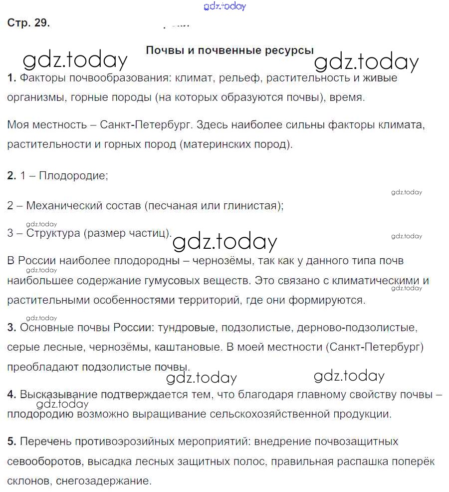 Ответы к Страницы (решение) 29 Рабочей тетради по Географии для 8 класса Баринова, Суслов Экзамен УМК 2019