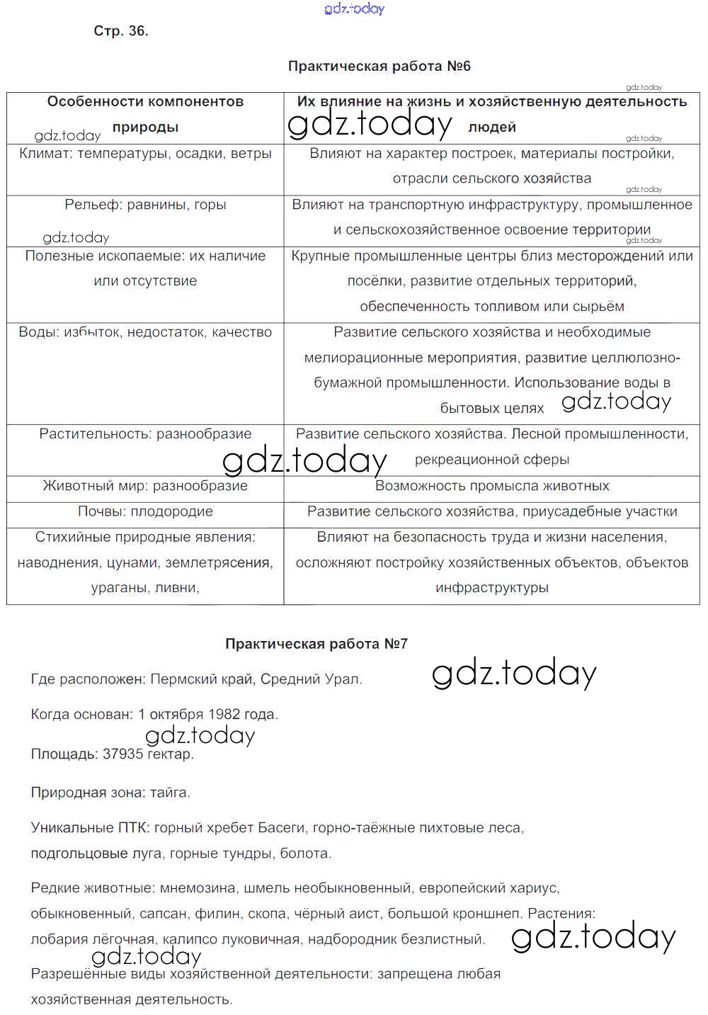 Ответы к Страницы (решение) 36 Рабочей тетради по Географии для 8 класса Баринова, Суслов Экзамен УМК 2019