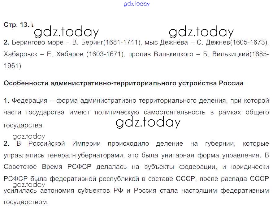 На страницах сайта gdz.today вы найдете учебный и вспомогательный материал, направленный на улучшения знаний школьной программы. ГДЗ - онлайн мир знаний Страницы (решение) 13 Рабочей тетради по Географии для 8 класса Баринова, Дронов Дрофа УМК 2017