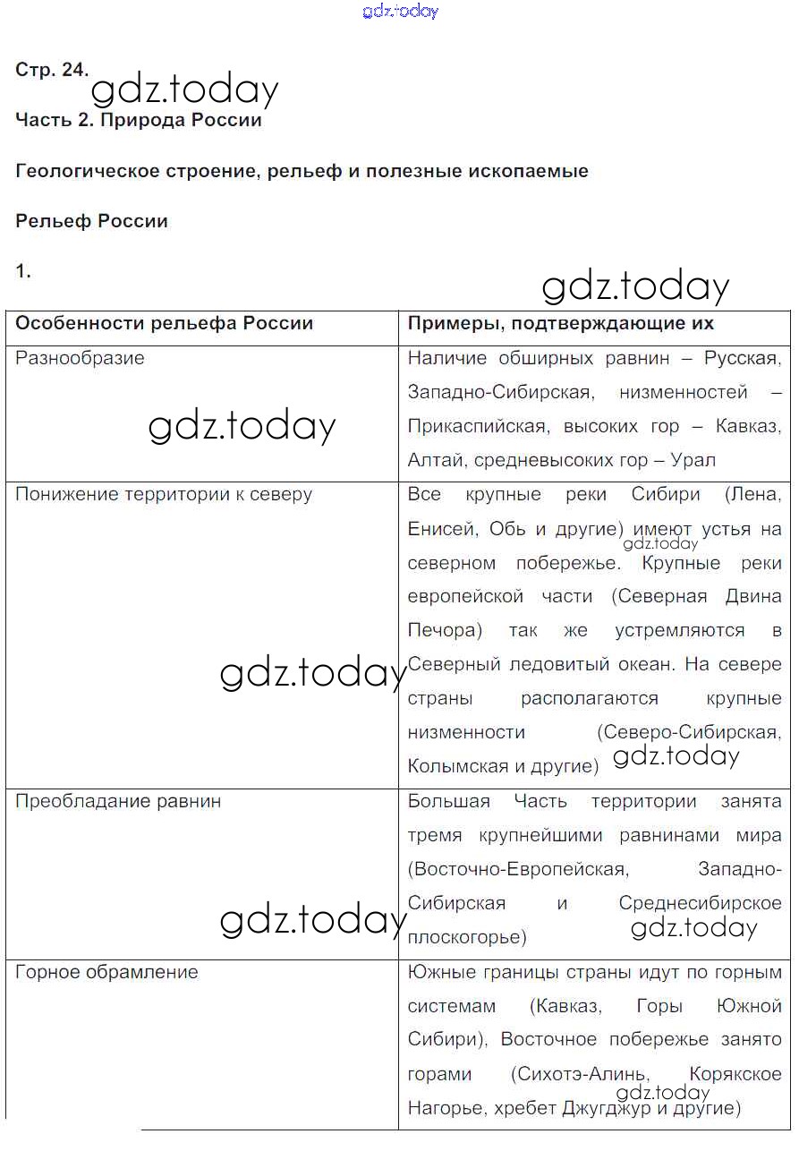На страницах сайта gdz.today вы найдете учебный и вспомогательный материал, направленный на улучшения знаний школьной программы. ГДЗ - онлайн мир знаний Страницы (решение) 24 Рабочей тетради по Географии для 8 класса Баринова, Дронов Дрофа УМК 2017