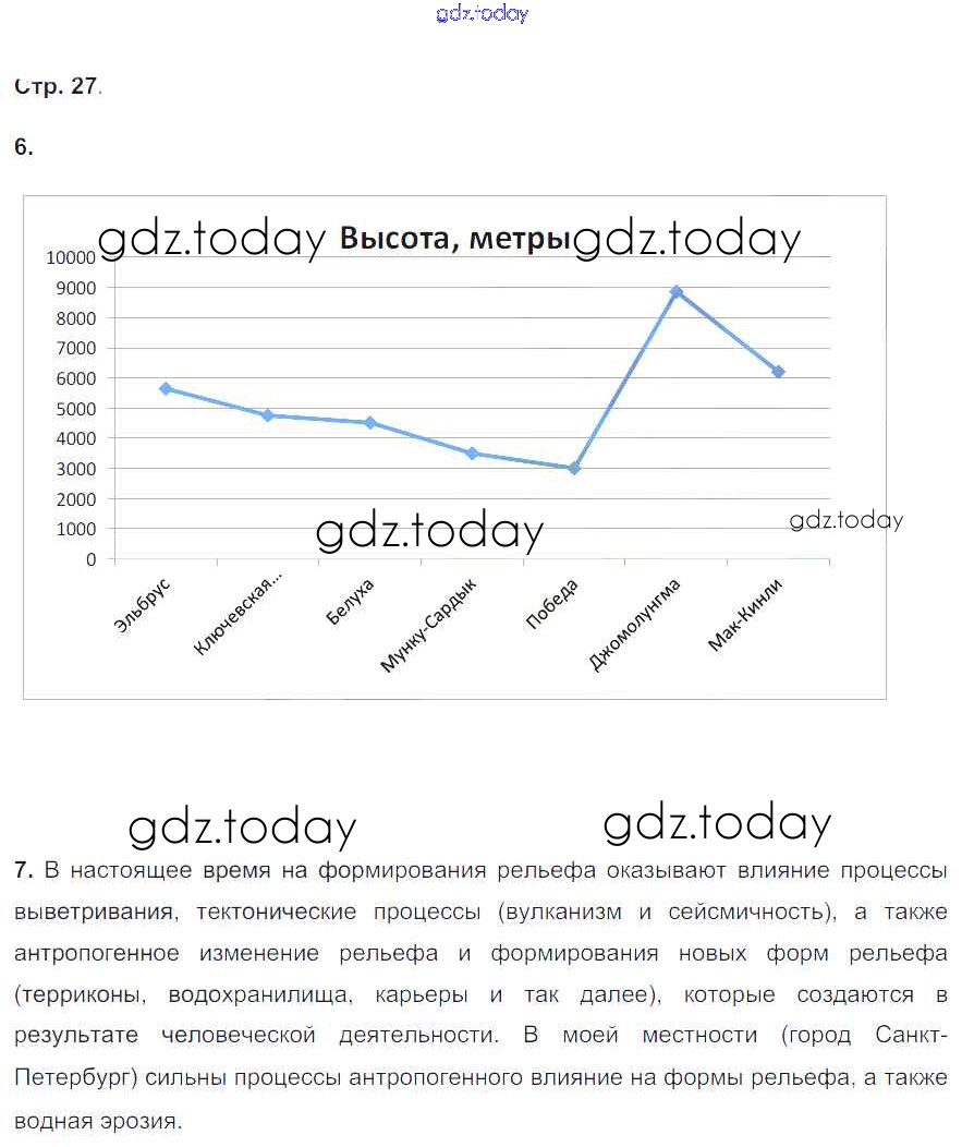 На страницах сайта gdz.today вы найдете учебный и вспомогательный материал, направленный на улучшения знаний школьной программы. ГДЗ - онлайн мир знаний Страницы (решение) 27 Рабочей тетради по Географии для 8 класса Баринова, Дронов Дрофа УМК 2017