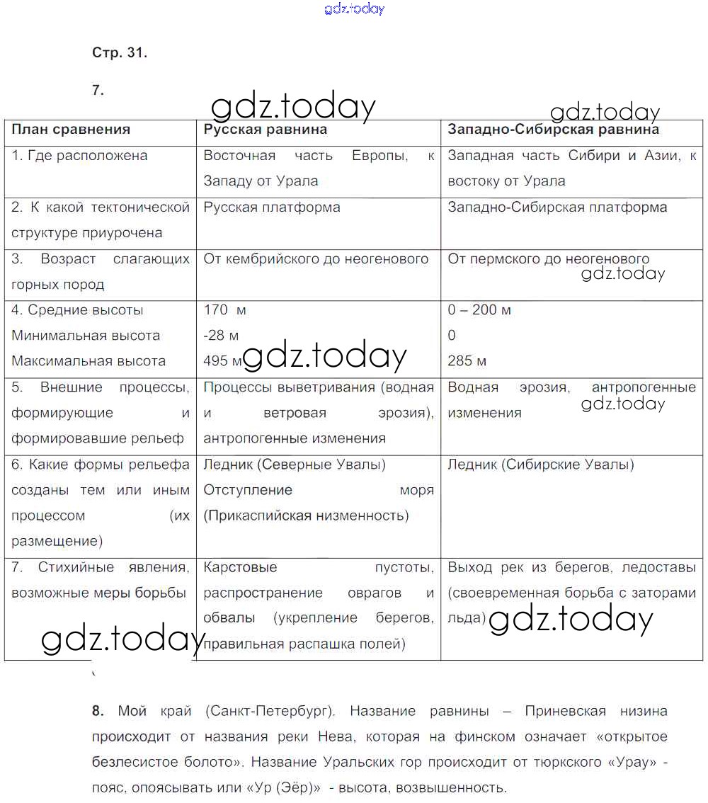 На страницах сайта gdz.today вы найдете учебный и вспомогательный материал, направленный на улучшения знаний школьной программы. ГДЗ - онлайн мир знаний Страницы (решение) 31 Рабочей тетради по Географии для 8 класса Баринова, Дронов Дрофа УМК 2017