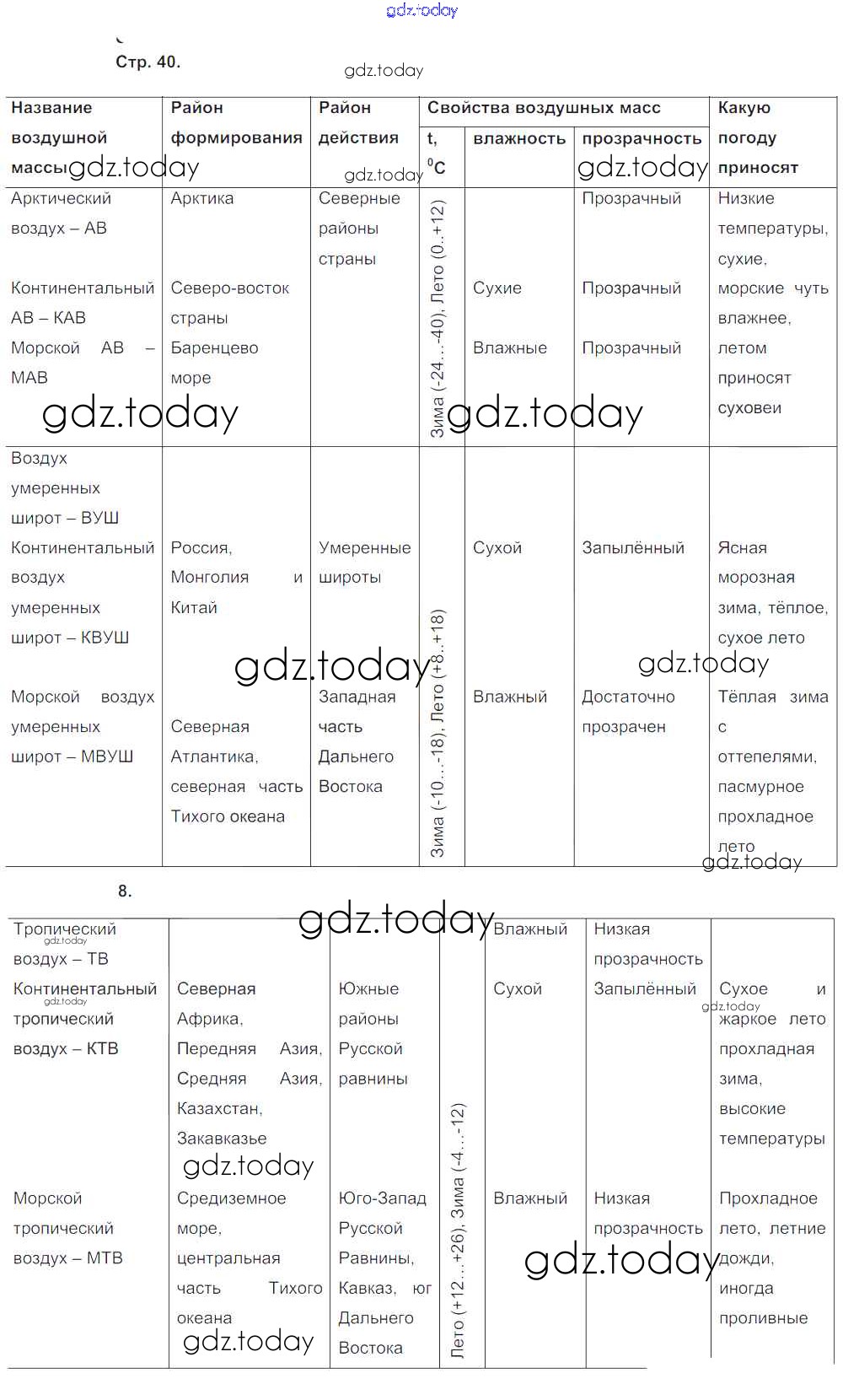 Ответы к Страницы (решение) 40 Рабочей тетради по Географии для 8 класса Баринова, Дронов Дрофа УМК 2017