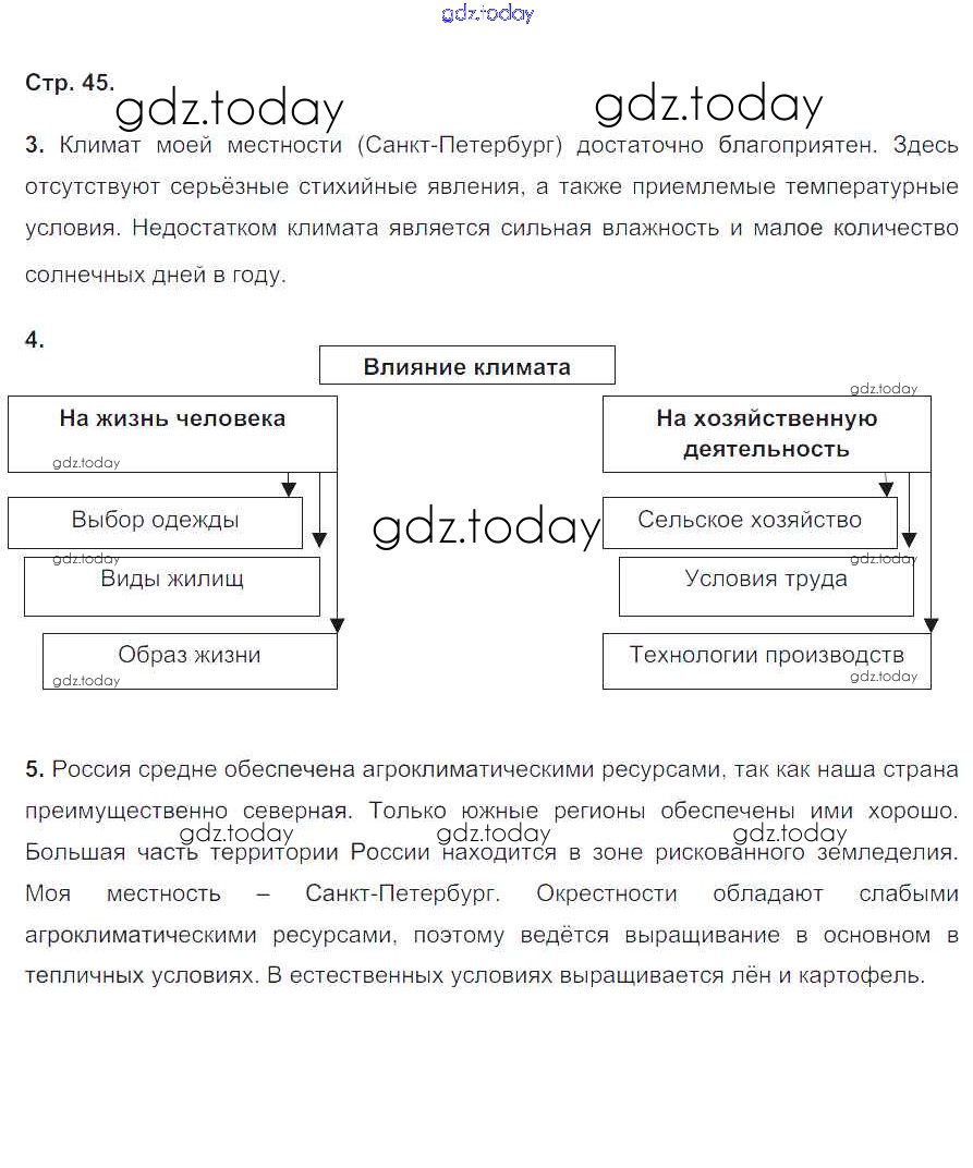 На страницах сайта gdz.today вы найдете учебный и вспомогательный материал, направленный на улучшения знаний школьной программы. ГДЗ - онлайн мир знаний Страницы (решение) 45 Рабочей тетради по Географии для 8 класса Баринова, Дронов Дрофа УМК 2017