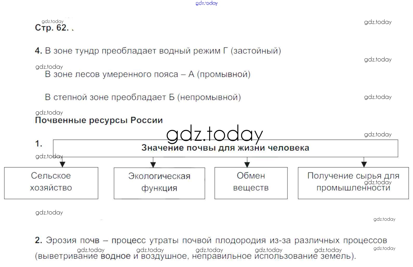 Ответы к Страницы (решение) 62 Рабочей тетради по Географии для 8 класса Баринова, Дронов Дрофа УМК 2017