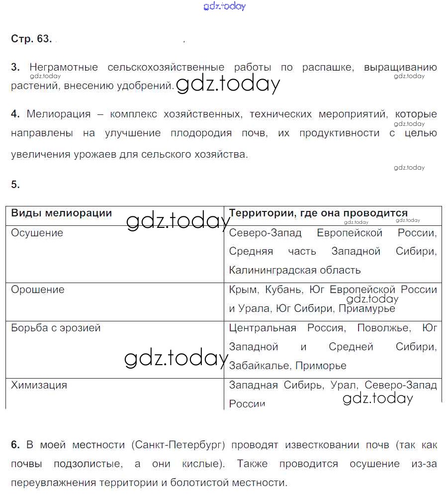 На страницах сайта gdz.today вы найдете учебный и вспомогательный материал, направленный на улучшения знаний школьной программы. ГДЗ - онлайн мир знаний Страницы (решение) 63 Рабочей тетради по Географии для 8 класса Баринова, Дронов Дрофа УМК 2017