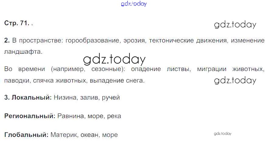 На страницах сайта gdz.today вы найдете учебный и вспомогательный материал, направленный на улучшения знаний школьной программы. ГДЗ - онлайн мир знаний Страницы (решение) 71 Рабочей тетради по Географии для 8 класса Баринова, Дронов Дрофа УМК 2017