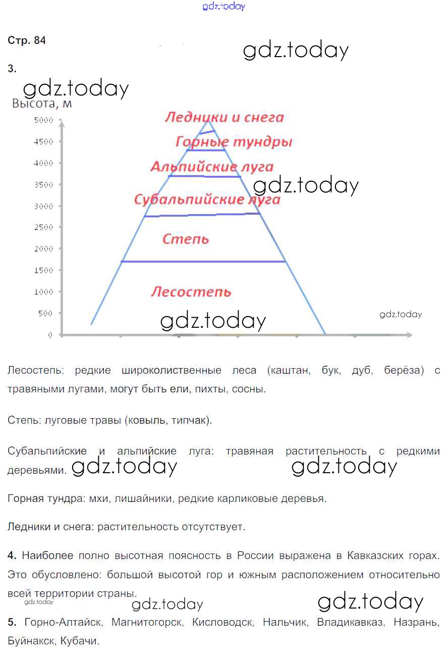 Ответы к Страницы (решение) 84 Рабочей тетради по Географии для 8 класса Баринова, Дронов Дрофа УМК 2017