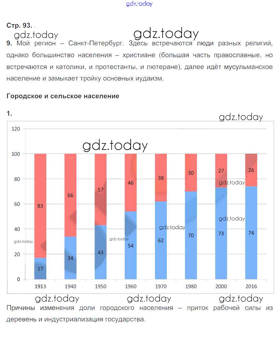 На страницах сайта gdz.today вы найдете учебный и вспомогательный материал, направленный на улучшения знаний школьной программы. ГДЗ - онлайн мир знаний Страницы (решение) 93 Рабочей тетради по Географии для 8 класса Баринова, Дронов Дрофа УМК 2017