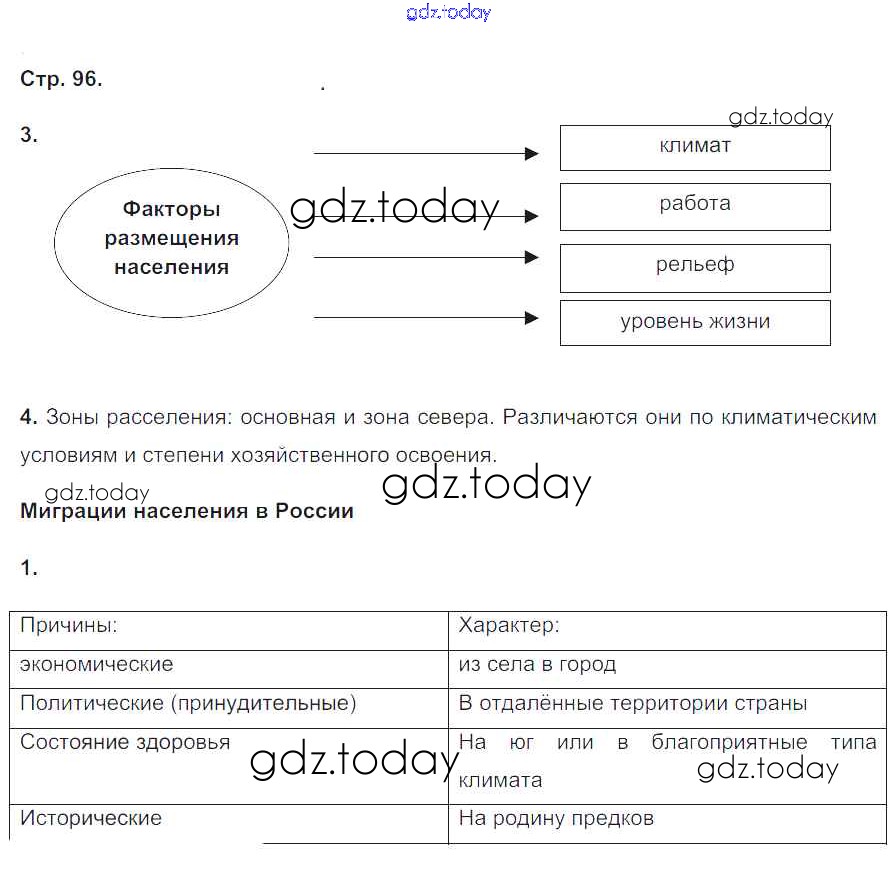Ответы к Страницы (решение) 96 Рабочей тетради по Географии для 8 класса Баринова, Дронов Дрофа УМК 2017