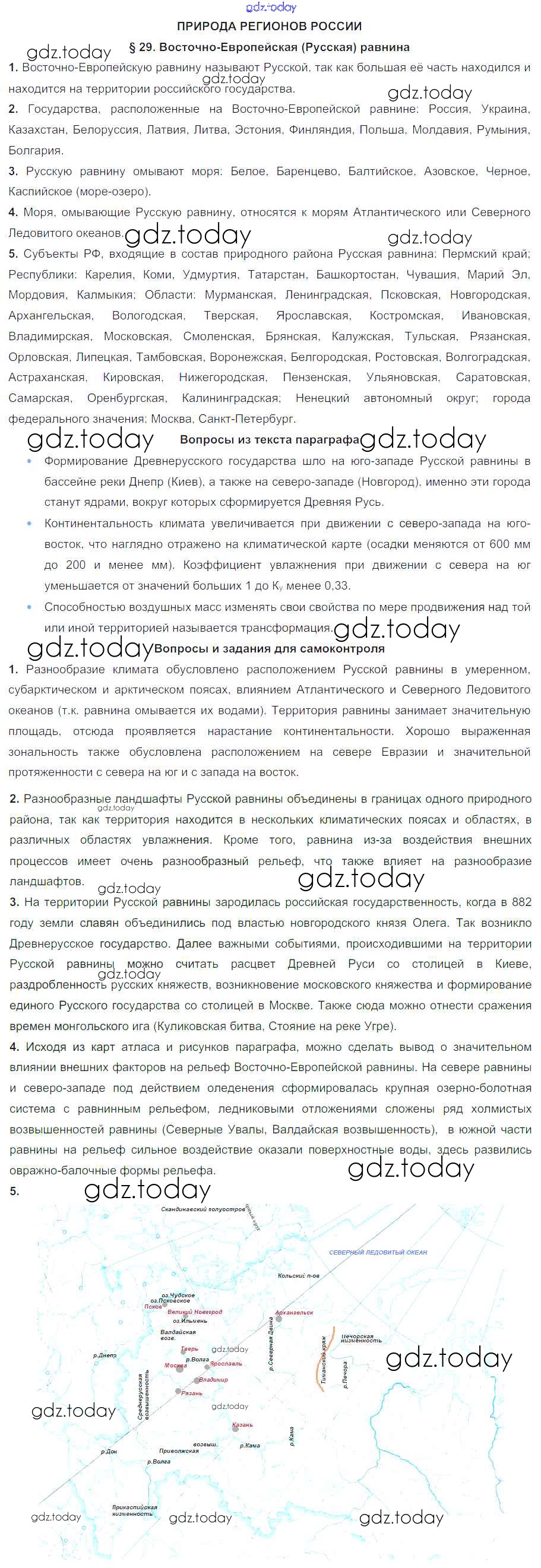 На страницах сайта gdz.today вы найдете учебный и вспомогательный материал, направленный на улучшения знаний школьной программы. ГДЗ - онлайн мир знаний Решение к параграфам 29 Учебнику по Географии для 8 класса Баринова Дрофа УМК 2019