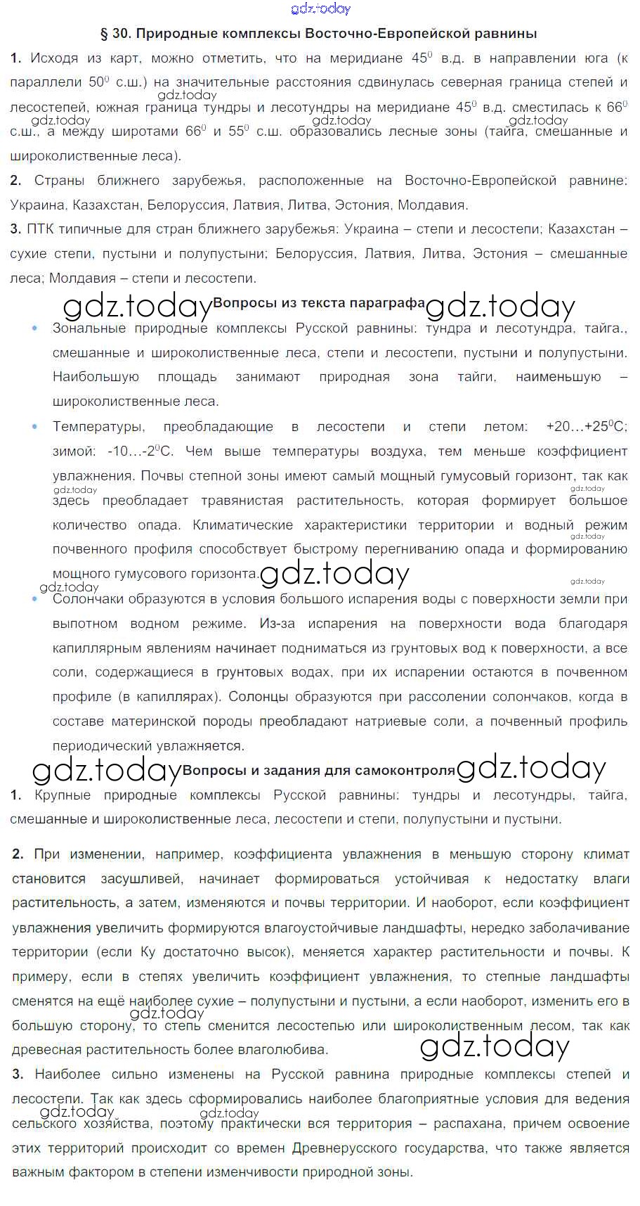 На страницах сайта gdz.today вы найдете учебный и вспомогательный материал, направленный на улучшения знаний школьной программы. ГДЗ - онлайн мир знаний Решение к параграфам 30 Учебнику по Географии для 8 класса Баринова Дрофа УМК 2019