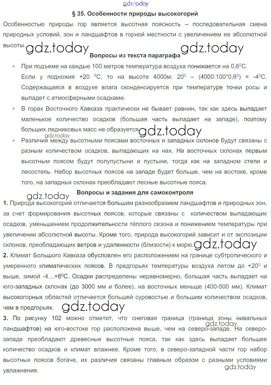 На страницах сайта gdz.today вы найдете учебный и вспомогательный материал, направленный на улучшения знаний школьной программы. ГДЗ - онлайн мир знаний Решение к параграфам  35 Учебнику по Географии для 8 класса Баринова  Дрофа УМК 2019