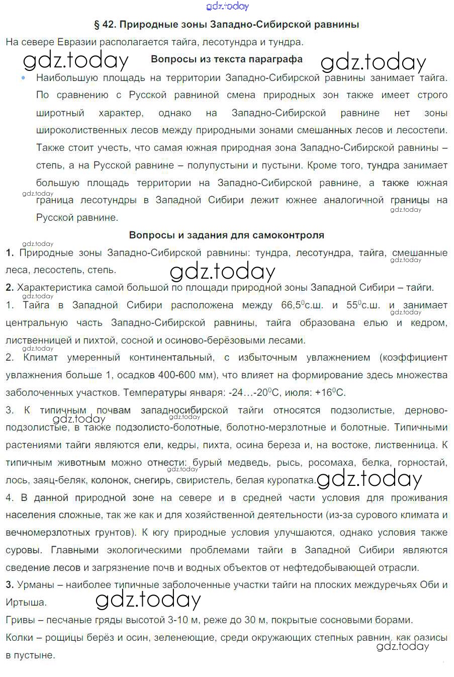 На страницах сайта gdz.today вы найдете учебный и вспомогательный материал, направленный на улучшения знаний школьной программы. ГДЗ - онлайн мир знаний Решение к параграфам 42 Учебнику по Географии для 8 класса Баринова Дрофа УМК 2019