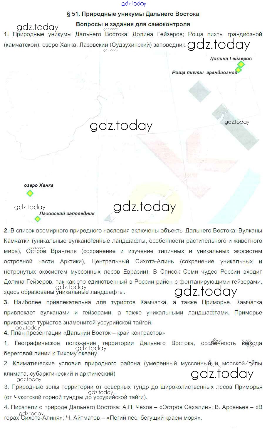 На страницах сайта gdz.today вы найдете учебный и вспомогательный материал, направленный на улучшения знаний школьной программы. ГДЗ - онлайн мир знаний Решение к параграфам 51 Учебнику по Географии для 8 класса Баринова Дрофа УМК 2019