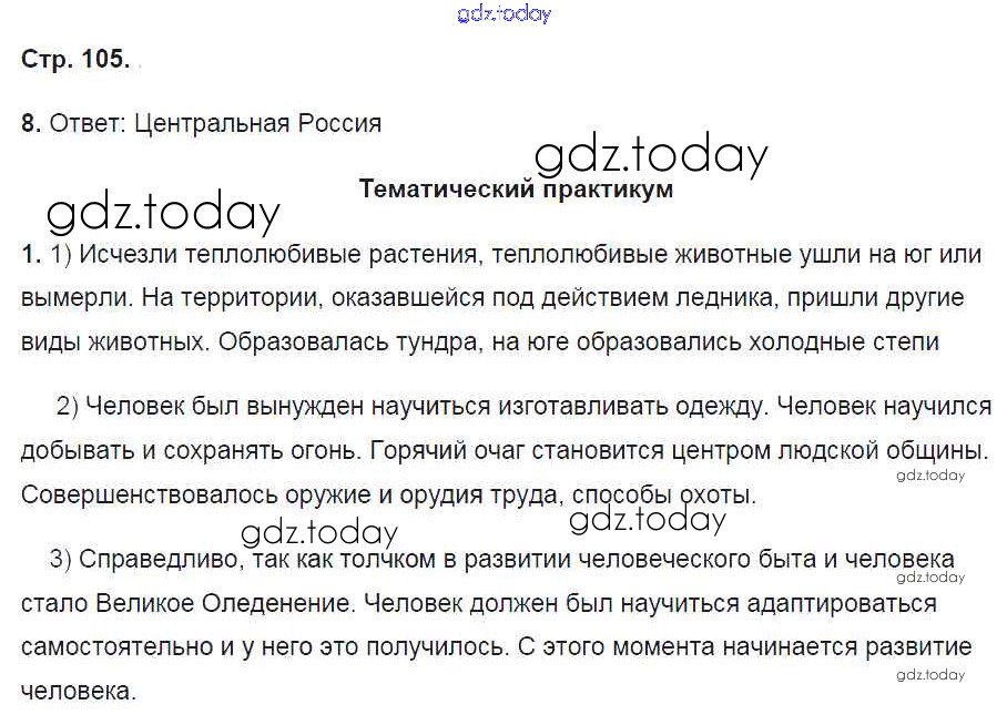 На страницах сайта gdz.today вы найдете учебный и вспомогательный материал, направленный на улучшения знаний школьной программы. ГДЗ - онлайн мир знаний Решение к части 1. Страницы 105 Рабочей тетради по Географии для 8 класса Домогацких Русское слово Инновационная школа 2017