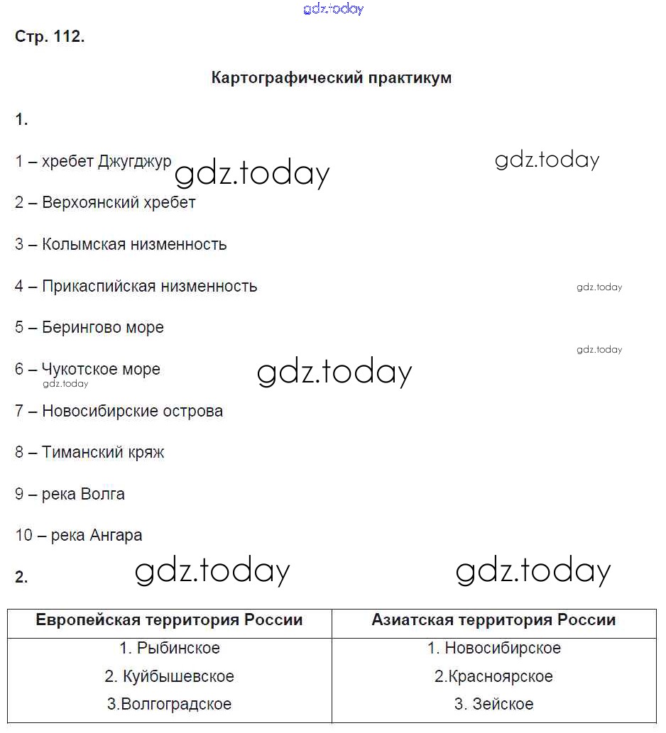 На страницах сайта gdz.today вы найдете учебный и вспомогательный материал, направленный на улучшения знаний школьной программы. ГДЗ - онлайн мир знаний Решение к части 1. Страницы 112 Рабочей тетради по Географии для 8 класса Домогацких Русское слово Инновационная школа 2017