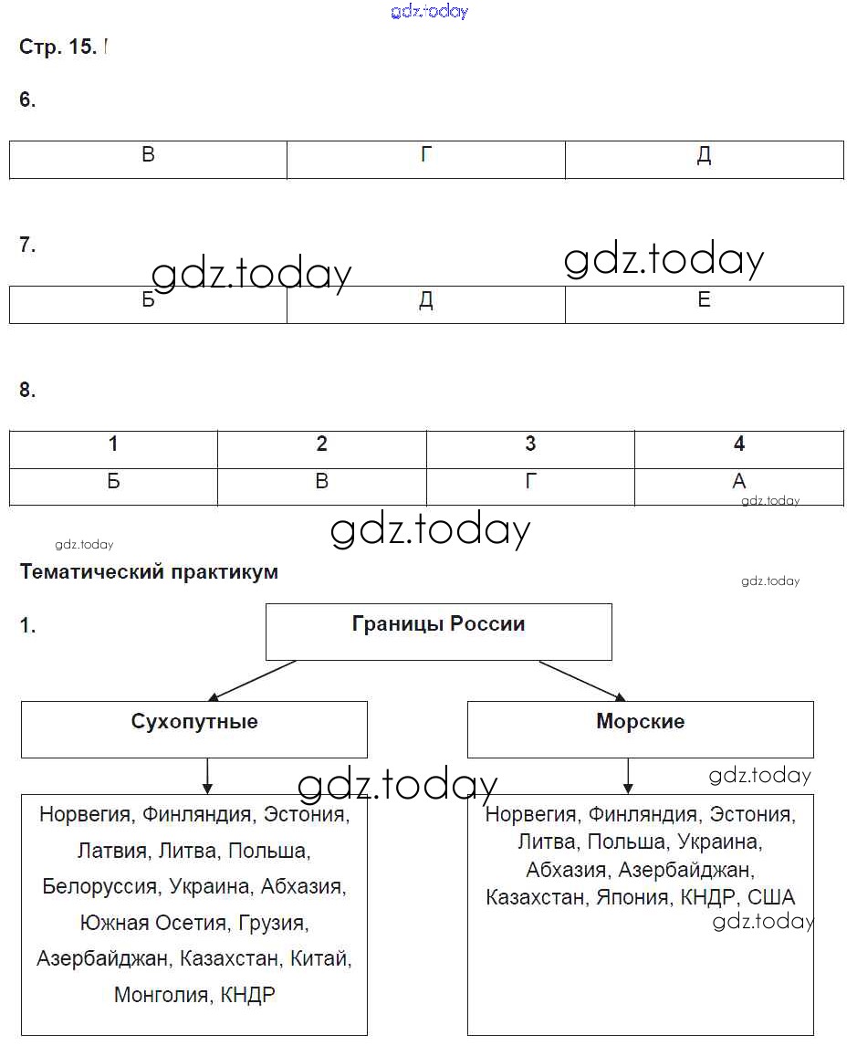 На страницах сайта gdz.today вы найдете учебный и вспомогательный материал, направленный на улучшения знаний школьной программы. ГДЗ - онлайн мир знаний Решение к части 1. Страницы 15 Рабочей тетради по Географии для 8 класса Домогацких Русское слово Инновационная школа 2017