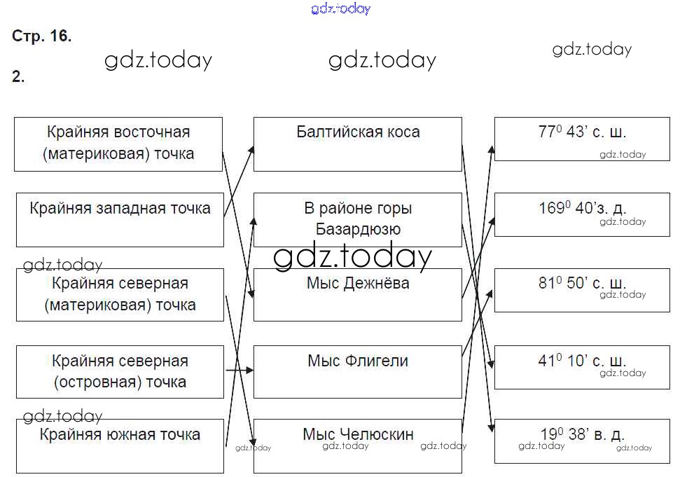 На страницах сайта gdz.today вы найдете учебный и вспомогательный материал, направленный на улучшения знаний школьной программы. ГДЗ - онлайн мир знаний Решение к части 1. Страницы 16 Рабочей тетради по Географии для 8 класса Домогацких Русское слово Инновационная школа 2017