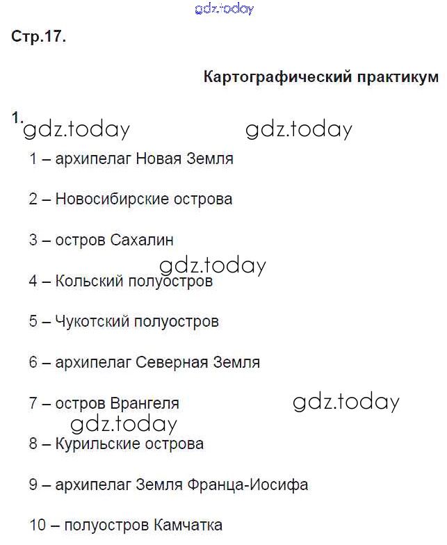 На страницах сайта gdz.today вы найдете учебный и вспомогательный материал, направленный на улучшения знаний школьной программы. ГДЗ - онлайн мир знаний Решение к части 1. Страницы 17 Рабочей тетради по Географии для 8 класса Домогацких Русское слово Инновационная школа 2017