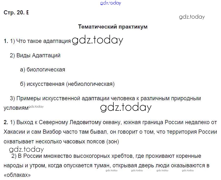 На страницах сайта gdz.today вы найдете учебный и вспомогательный материал, направленный на улучшения знаний школьной программы. ГДЗ - онлайн мир знаний Решение к части 1. Страницы 20 Рабочей тетради по Географии для 8 класса Домогацких Русское слово Инновационная школа 2017