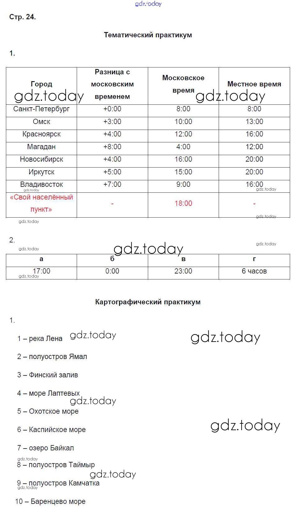 На страницах сайта gdz.today вы найдете учебный и вспомогательный материал, направленный на улучшения знаний школьной программы. ГДЗ - онлайн мир знаний Решение к части 1. Страницы 24 Рабочей тетради по Географии для 8 класса Домогацких Русское слово Инновационная школа 2017
