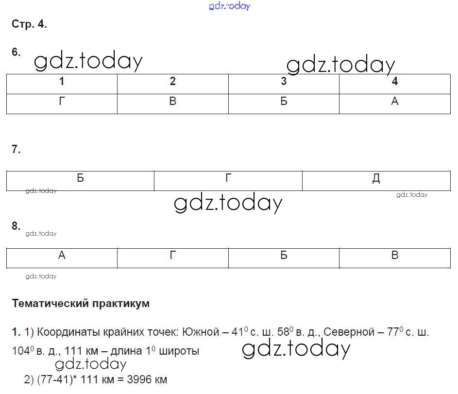 На страницах сайта gdz.today вы найдете учебный и вспомогательный материал, направленный на улучшения знаний школьной программы. ГДЗ - онлайн мир знаний Решение к части 1. Страницы 4 Рабочей тетради по Географии для 8 класса Домогацких Русское слово Инновационная школа 2017